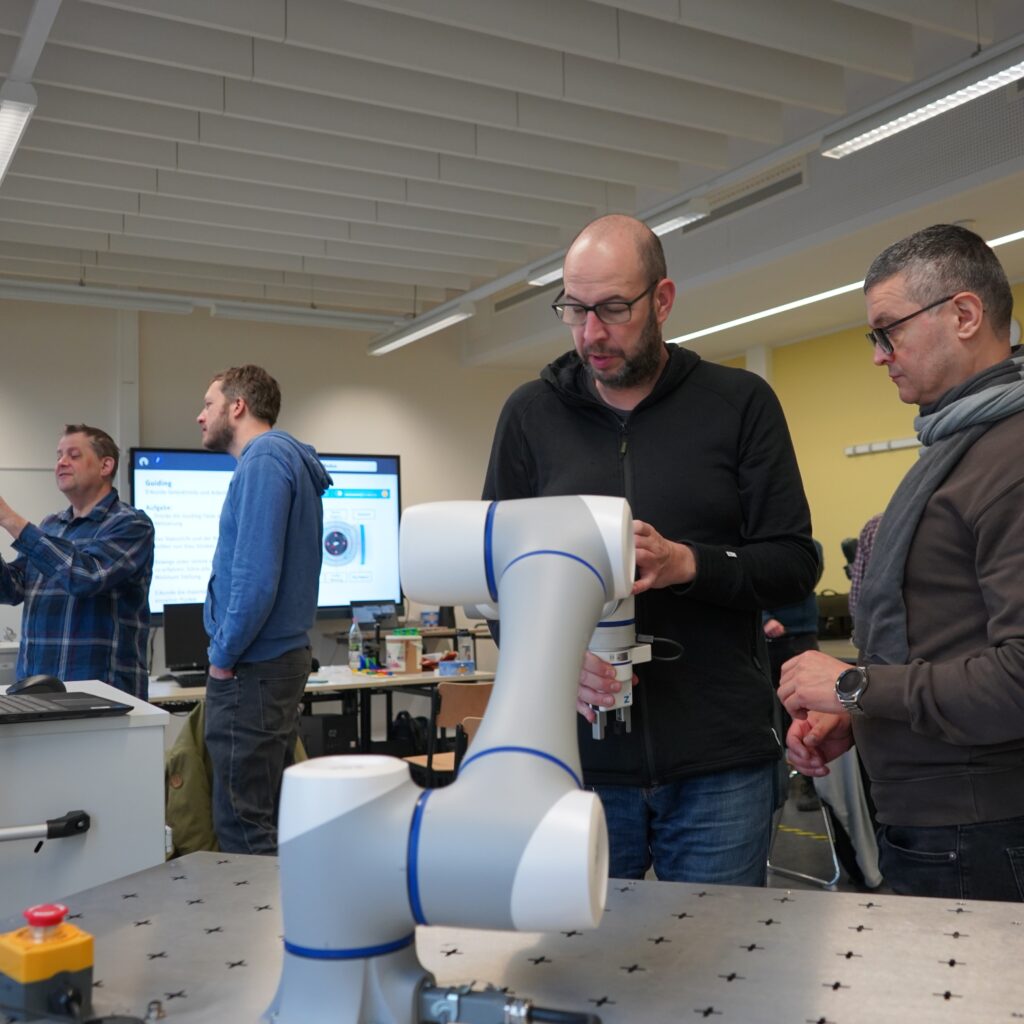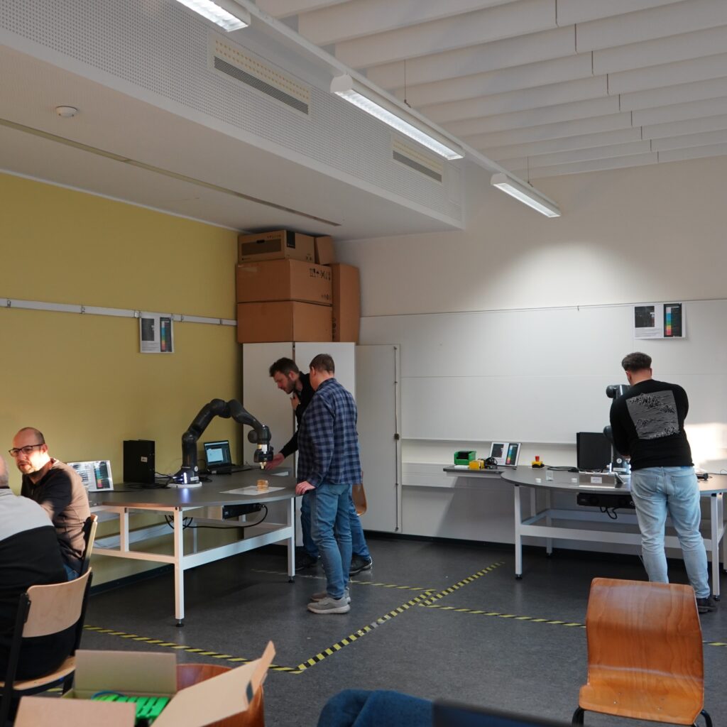 Geschult wurde an zwei modernen Systemen, die auch bei uns im Einsatz sind: Franka Robotics und Dobot. Beide Roboterarme begeistern durch einfache Handhabung und eröffnen zugleich tiefe Einblicke in algorithmisches Denken, Automatisierung und industrielle Prozesse. Theorie wird hier direkt praktisch, digital und erlebbar – im beruflichen Gymnasium, in der BFS, in der Elektro- und Metalltechnik und darüber hinaus.